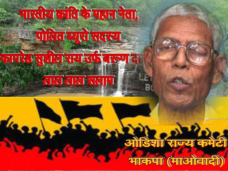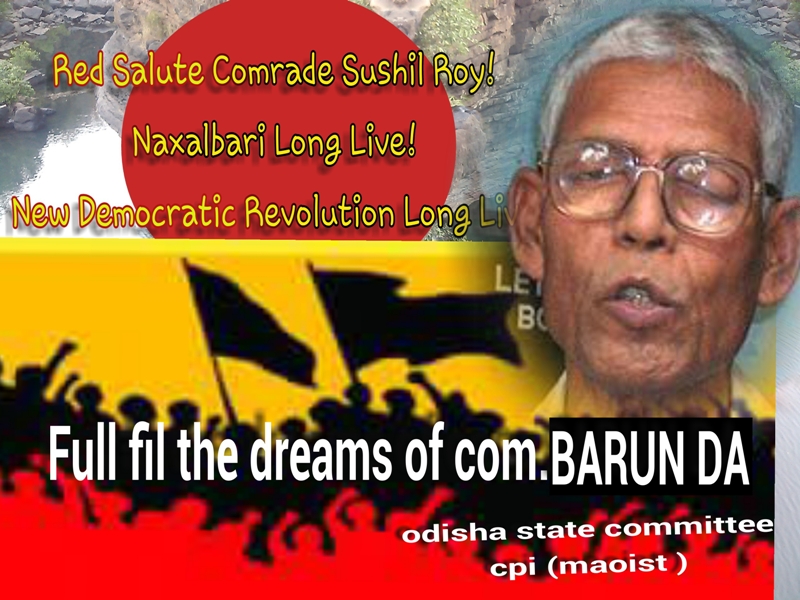 Posters in honor of Com. Barunda (Sushil Roy), put out by the Odisha State Committee of the CPI (Maoist), summer of 2014. Poster 1, English: JPG format (336 KB); Poster 2, English: JPG format (681 KB); Poster 2, Hindi: JPG format (419 KB)