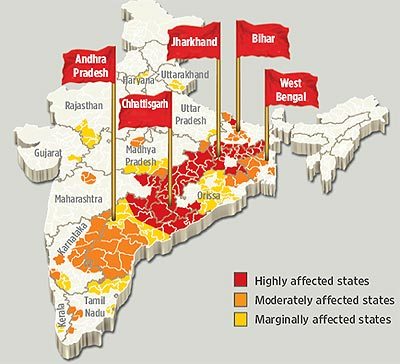 Areas of widespread CPI(Maoist) influence