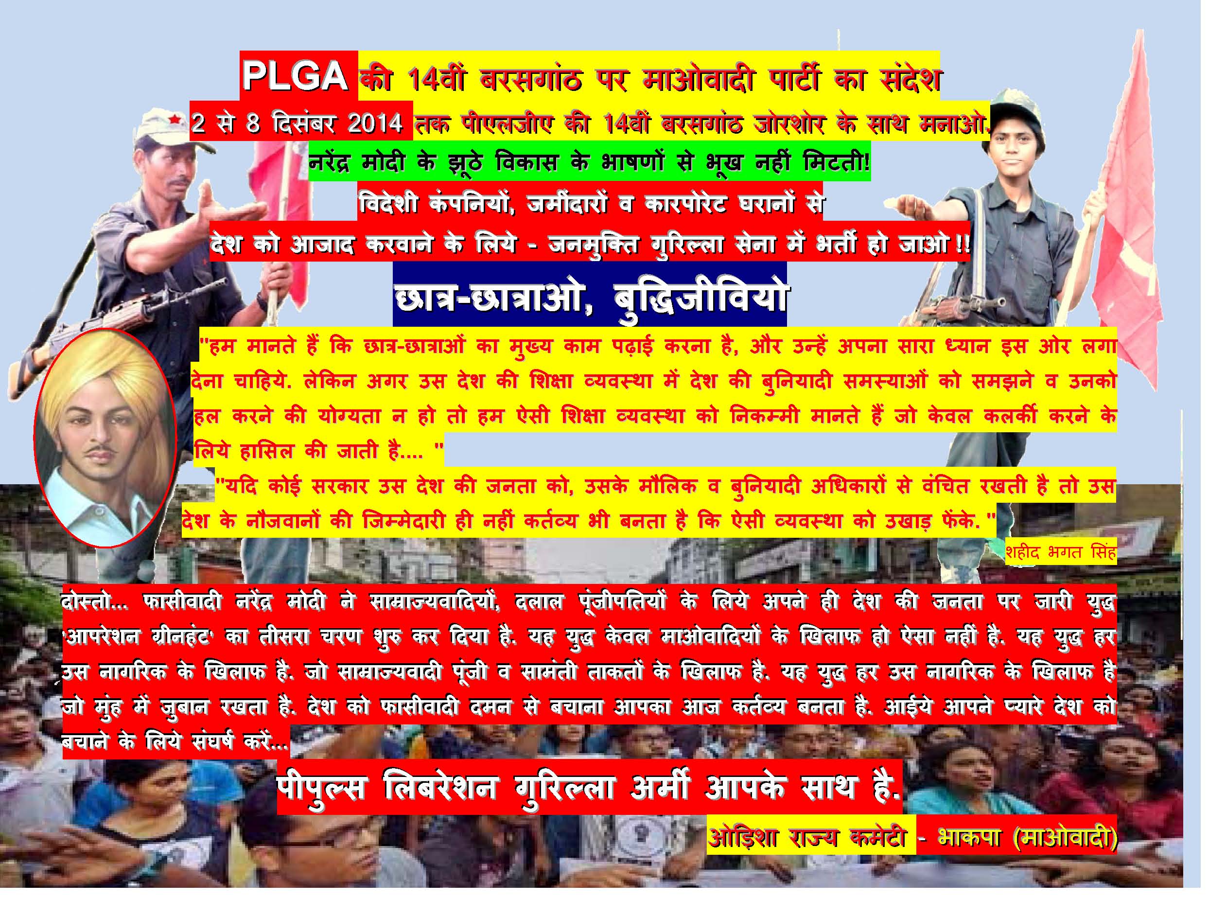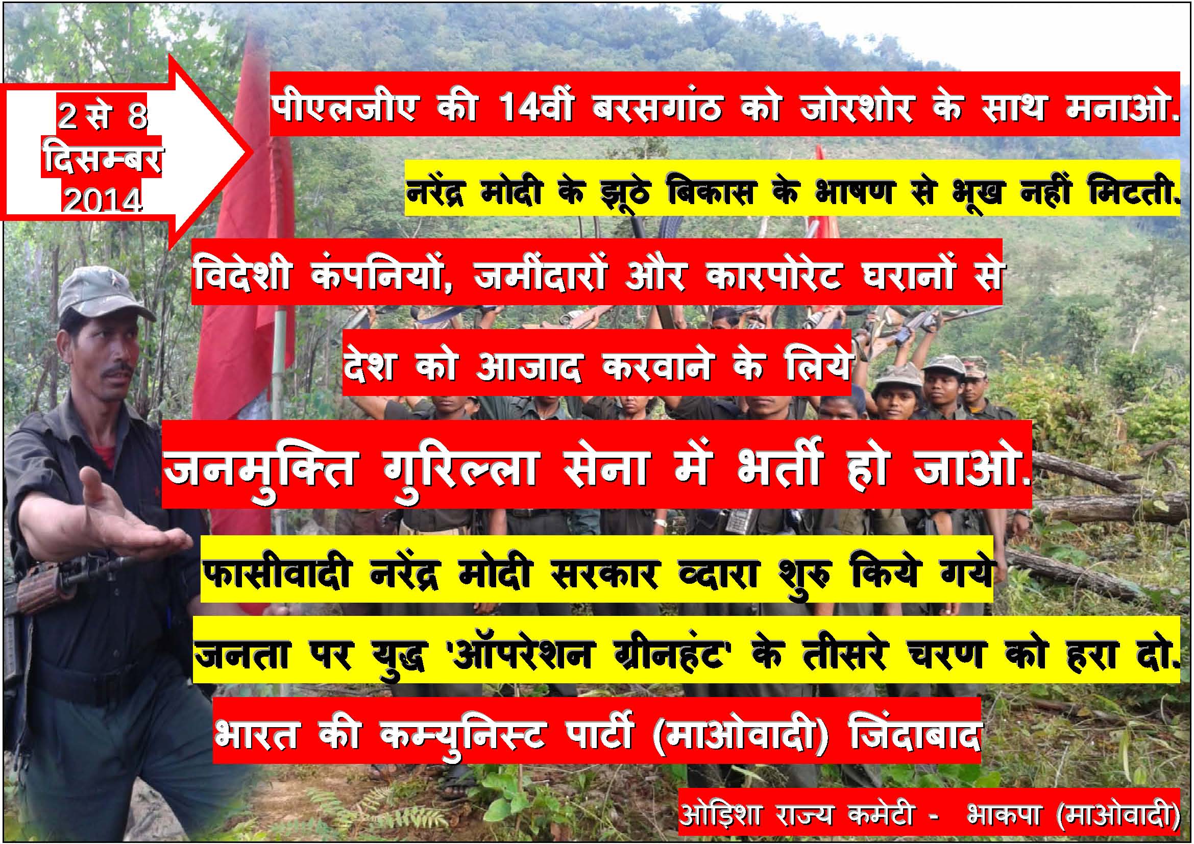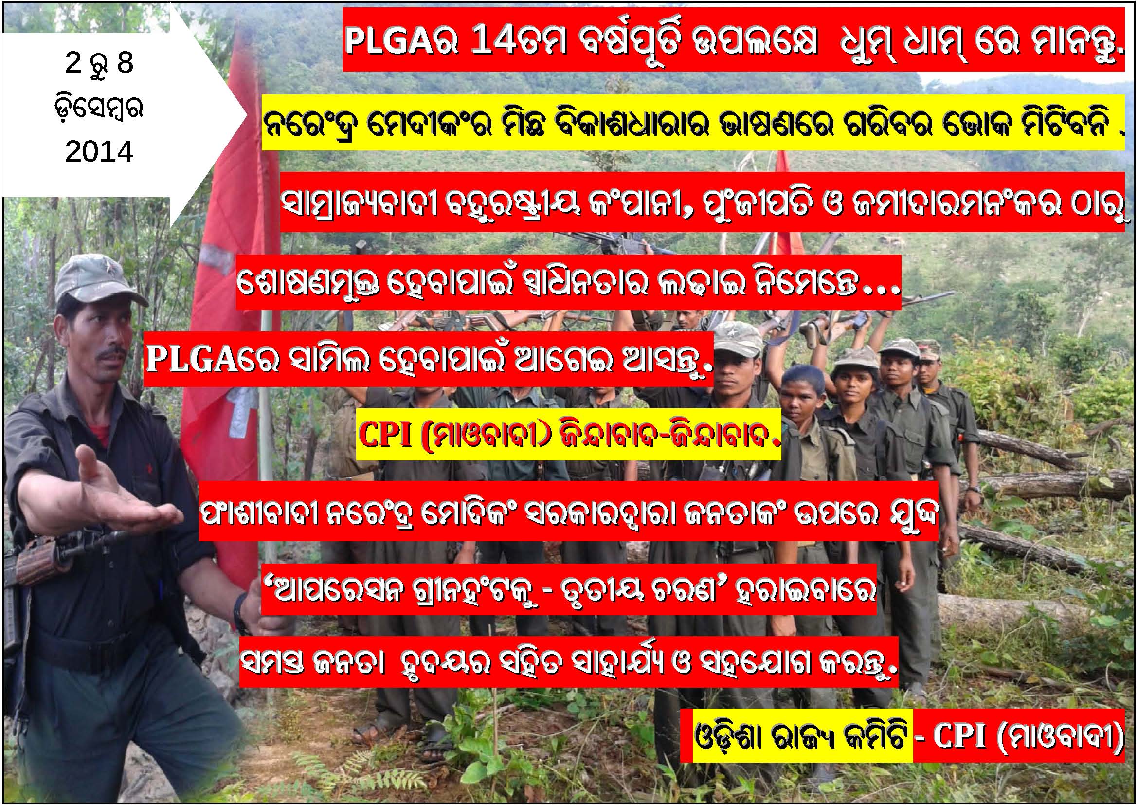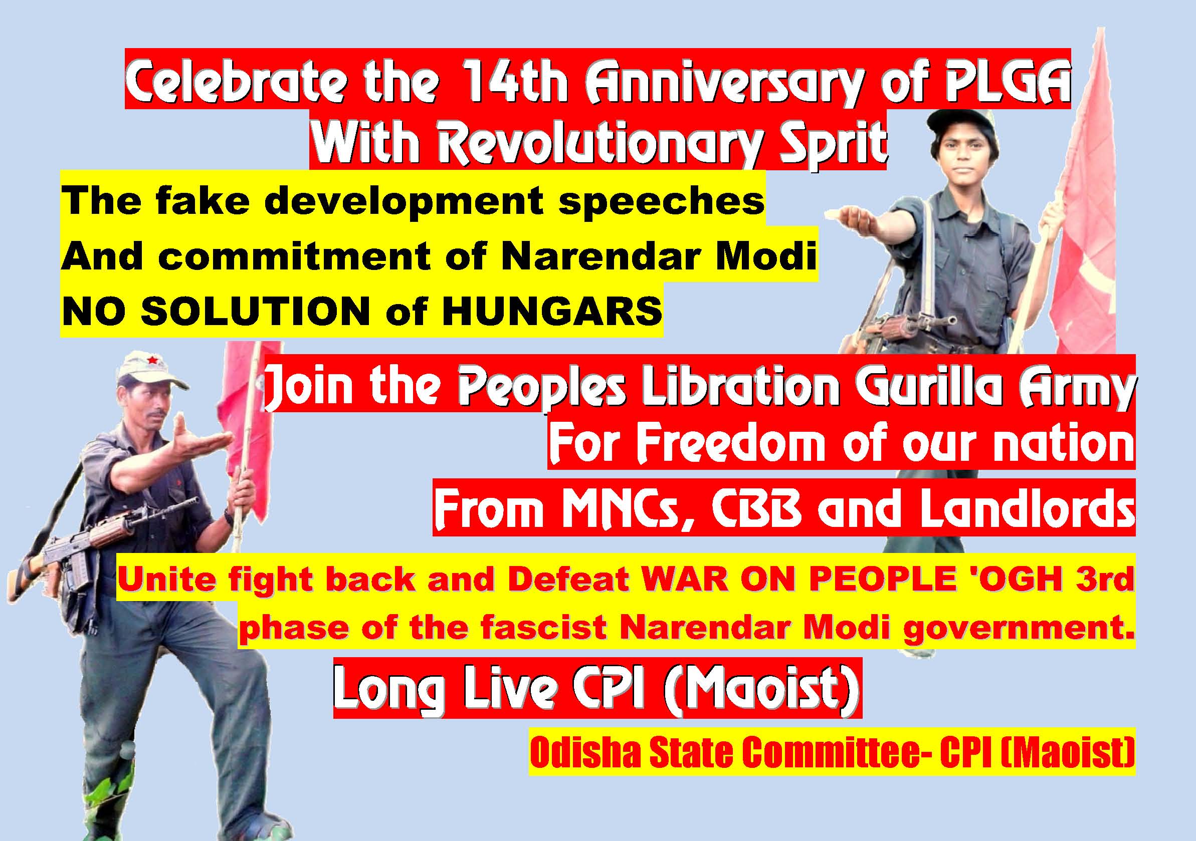 “Celebrate the 22nd Anniversary of the PLGA! Intensify Class Struggle-Guerrilla War. Defeat ‘SAMADHAN’ Offensive and Advance People’s War!”, statement by Abhay, Spokesperson for the Central Committee of the CPI (Maoist), November 28, 2022, 2 pages. English: PDF format [135 KB]; Hindi: PDF format [81 KB]; Telugu: PDF format [185 KB]