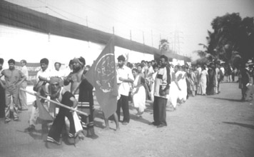 workshops. It culminated on the 18th night with a mashal morcha