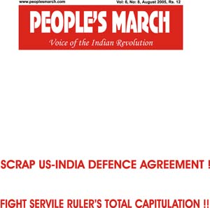 Editorial Political The Pseudo Pease Process in Kashmir Scrap Indo-US Millitary Agreement Polemics Liberation's Sneering Criticism of Maoist's Unity Feature Article Massive Unemployment; Shattered Myths From Pages of History |