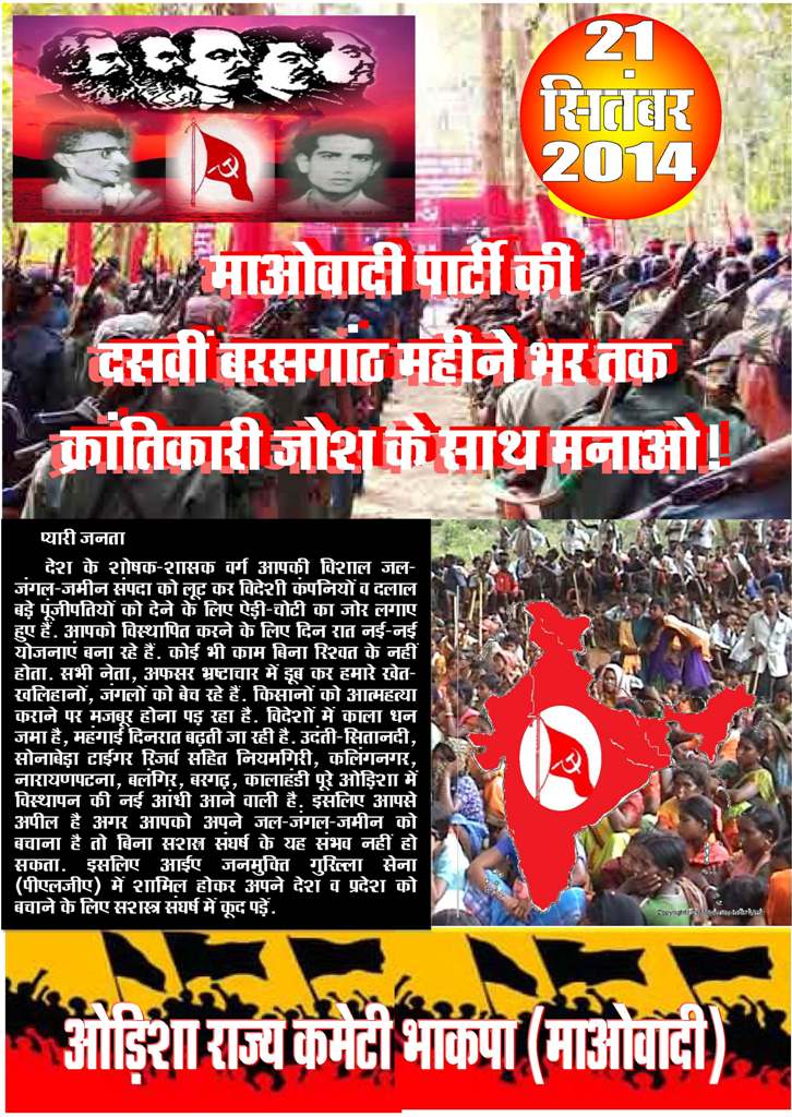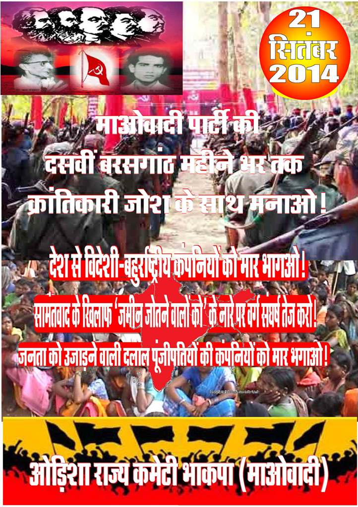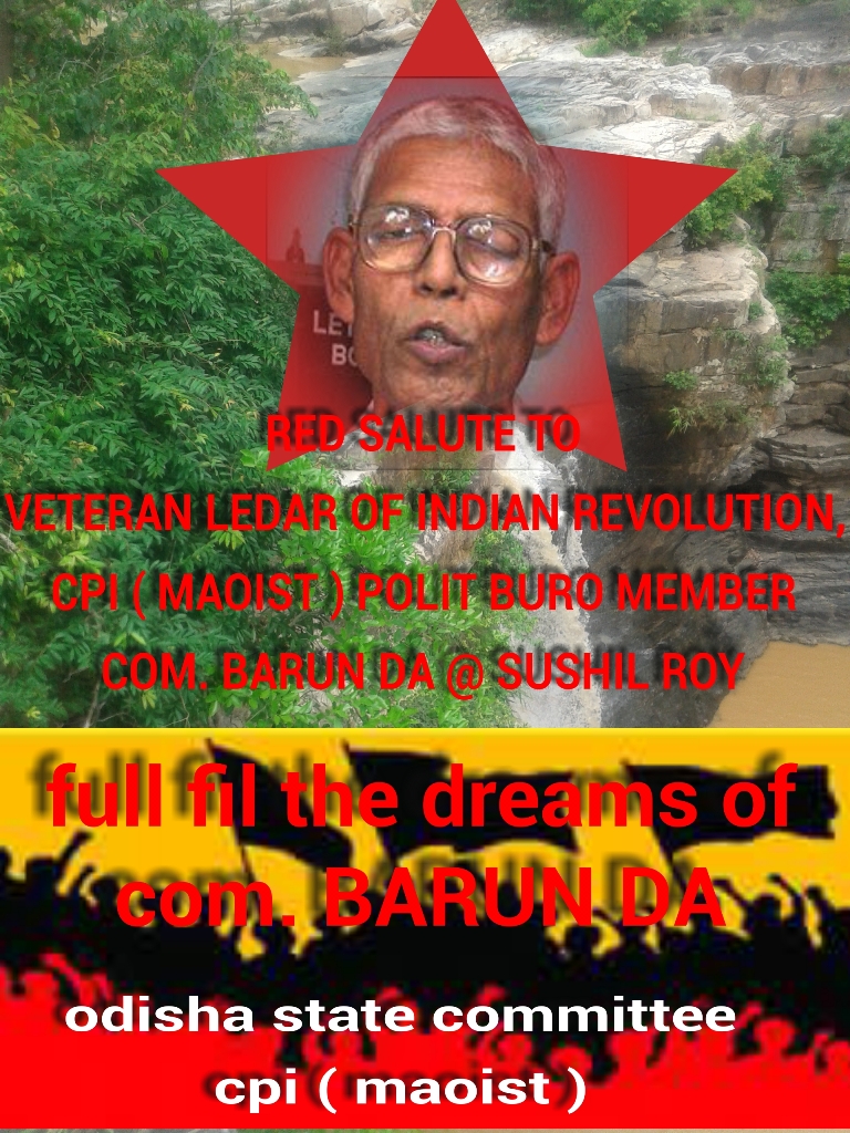 Posters in honor of Com. Barunda (Sushil Roy), put out by the Odisha State Committee of the CPI (Maoist), summer of 2014. Poster 1, English: JPG format (336 KB); Poster 2, English: JPG format (681 KB); Poster 2, Hindi: JPG format (419 KB)