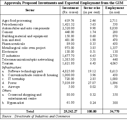 understanding (MOUs) that were signed promised an investment of Rs 7,000 crores