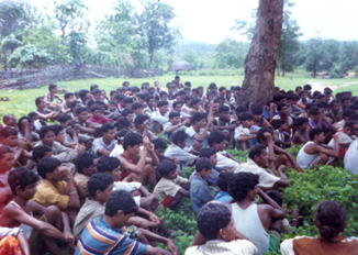 atmosphere. On 12-12-02, the outraged police burnt down three houses of Adivasis