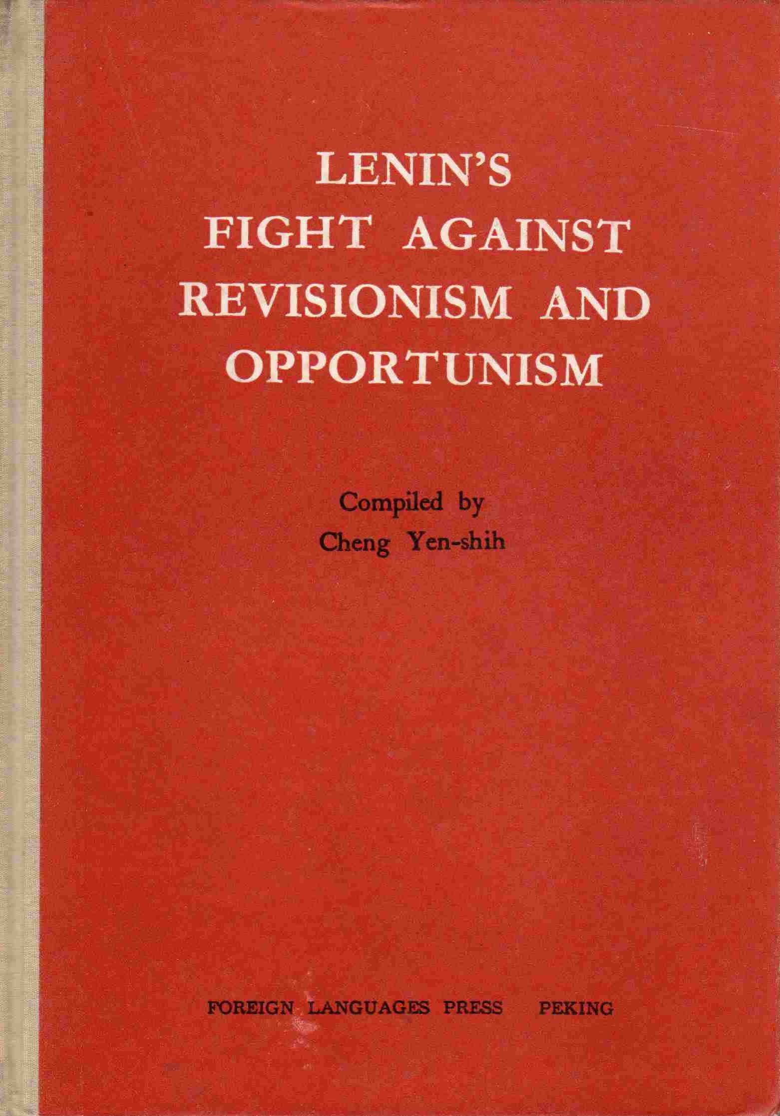 - [Book:] Lenin’s Fight Against Revisionism and Opportunism, compiled by Cheng Yen-shih, (Peking: Foreign Languages Press, 1965), 275 pages. [Note: This book is available in searchable PDF image format. It is now available as a single large PDF file, but because of the large size of the scanned book, each chapter has also been made available as a separate file.]